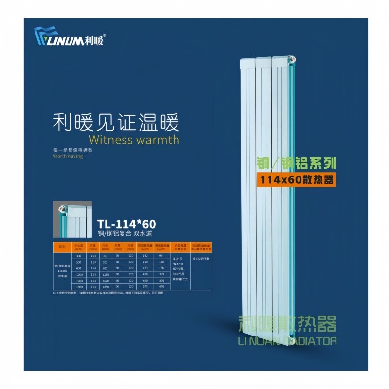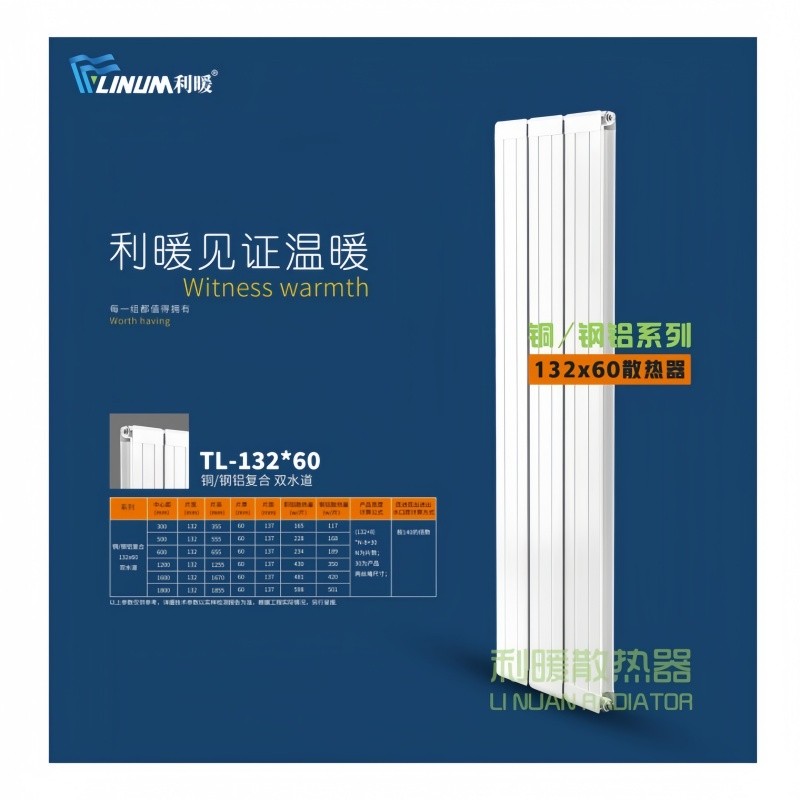 天津利暖散熱器生產鋼制散熱器、銅鋁復合散熱器、衛浴散熱器,支持定制,承接大小工程,新疆烏魯木齊長期倉儲大量現貨,隨訂隨發。我們的產品以誠信贏得了廣大消費者的認可。集各種散熱器之特色,精心設計,具有散熱性能好、重量輕、耐壓能力強、使用壽命長等特點。采用靜電噴塑,可提供各顏色系列。產品裝飾性能好,造型美觀,清潔方便。為滿足不同場景的供暖需求,企業構建了豐富多元的產品體系,涵蓋不同材質、款式與規格的暖氣片。無論是采用優質紫銅水道和航空級鋁材散熱翼,適用于家庭、辦
